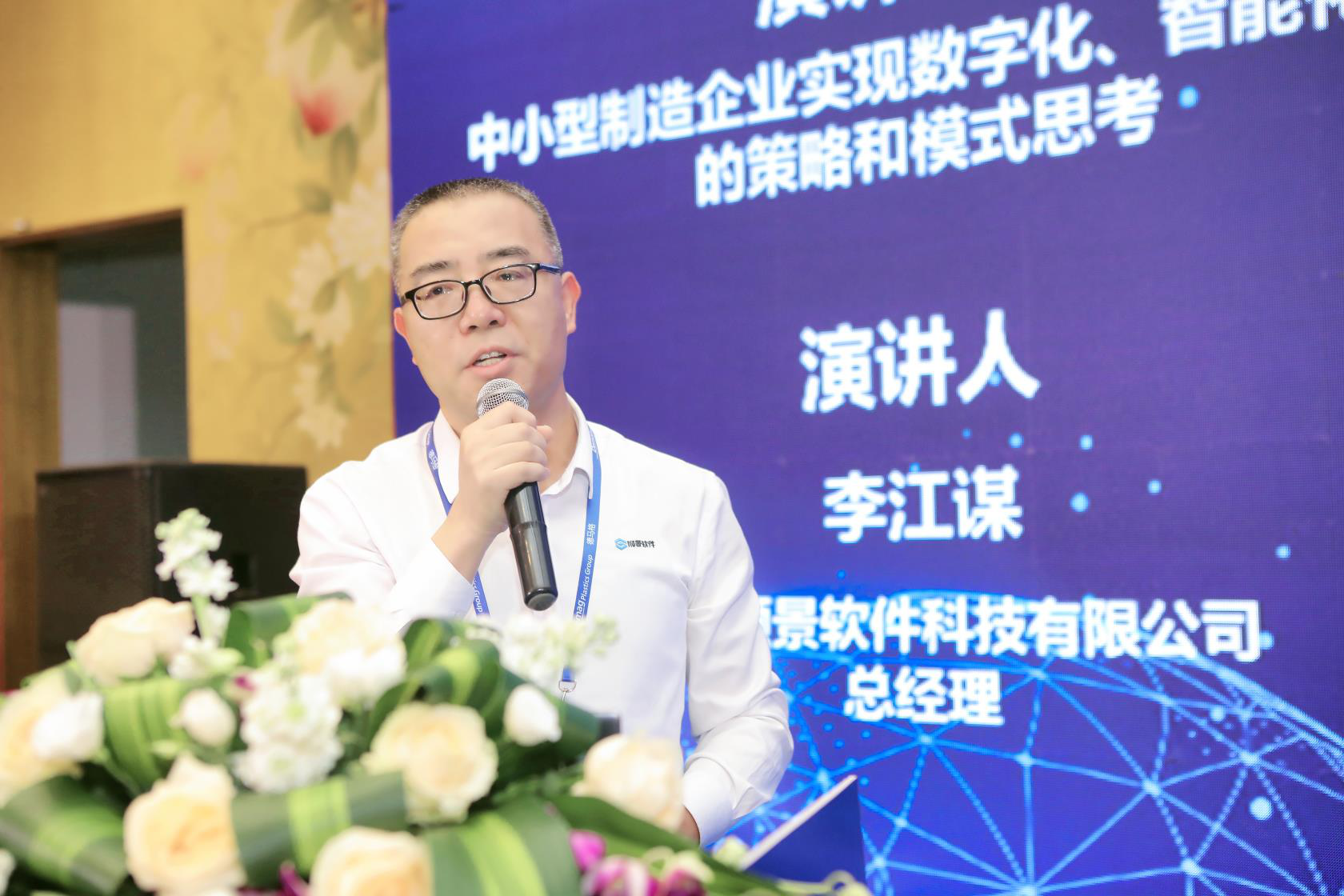 顺景软件总经理李江谋先生发表《中小型制造企业实现“数智化”转型的策略与方法》的演讲